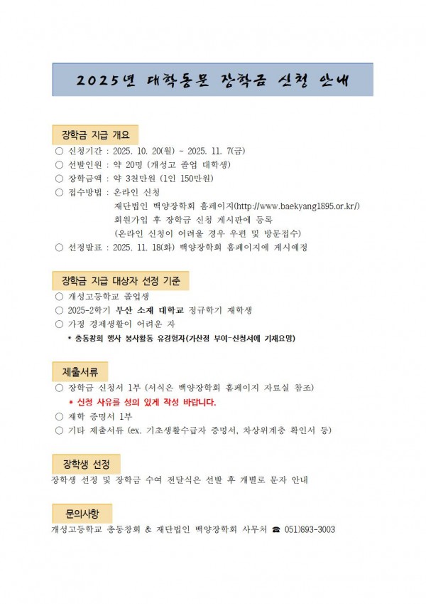 <2025년 대학동문 장학금 신청 안내>